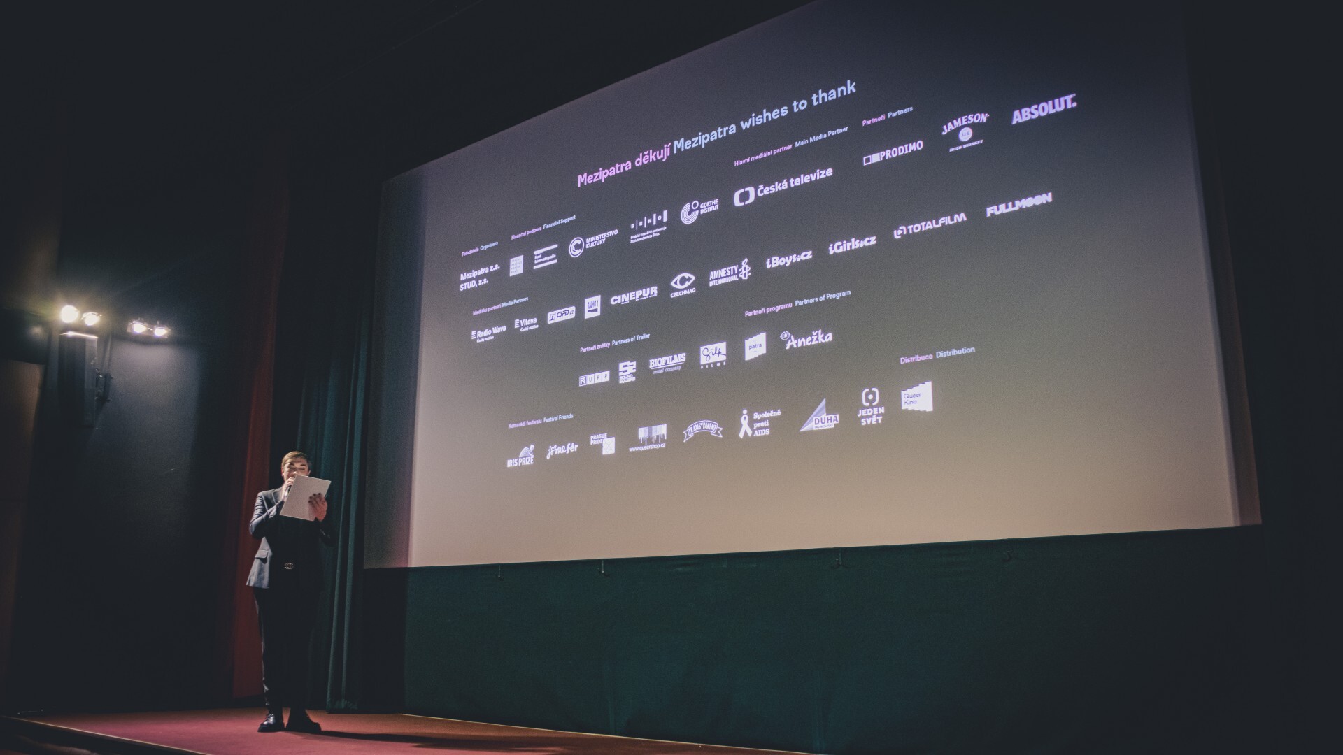 Zahajovací víkend brněnských Mezipater je úspěšně za námi. 26. ročník Queer Filmového Festivalu Mezipatra v Brně otevřela v kině Art Lucie Jarkovská z Dua Docentky. Na pódiu přivítala i ředitelku festivalu Kristýnu Gettnerovou, která v Artu uvedla zahajovací snímek Mýtné. Zároveň pozvala diváky do všech letošních festivalových kin – do Scaly, Artu, CITu a letos poprvé také do Televizního institutu.